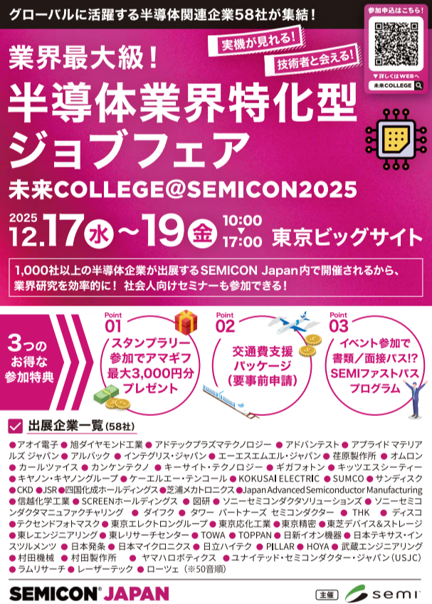 ※『未来COLLEGE@SEMICON2025』への参加には、『SEMICON Japan 2025』の来場登録が必要です。